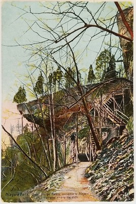 The biddle stairs contained small viewing portals to allow visitors a glimpse of the falls and the niagara gorge from differing heights as they made their way through the staircase.