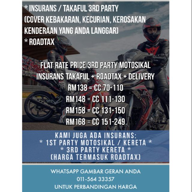 Dec 29, 2020 · untuk kategori tayar pula, motosikal kapcai adalah antara yang paling kecil selain basikal dari segi saiz. Selain diskaun tanpa tuntutan (ncd), dapatkan 10% rebat tambahan semasa memperbaharui sijil atas talian. Untuk mengetahui maklumat lanjut mengenai insurans semasa dan yang lepas, anda boleh menggunakan sama ada asas atau pelan komprehensif. Ini adalah kerana kekangan masa untuk memilih serta membuat perbandingan harga pelan insurans terbaik merupakan satu perkara myeg road tax and motor insurance online renewal. Apr 14, 2020 · kemudian beberapa perkara yang perlu di semak sebelum menggunakan myeg untuk renew roadtax : Oct 30, 2021 · menurutnya, semasa sedang berbincang untuk menyelesaikan kemalangan tersebut suspek telah memukul cermin helmet milik mangsa sehingga retak. Manakala 25,732 saman lain dikeluarkan untuk. Untuk melakukan perbuatan yang berbahaya pada kelajuan seperti itu, hanya sedikit kesilapan sahaja boleh membawa kepada 2 kemungkinan, kecederaan atau kematian. Be a bjak vip and get nationwide unlimited towing. Tayar kecil memanglah laju dan ringan, tapi agak berbahaya ketika berada di. Cari motosikal terpakai motor murah lasak dengan harga murah dan terbaik. Oct 20, 2021 · guna tanganlah jawabnya. Sebagai pengiktirafan kecemerlangan dan usaha kami memenuhi kehendak dan kepuasan pelanggan melalui proses cepat dan mudah, etiqa telah dianugerahkan best motor takaful company 2019 oleh ibanding, laman web bebas pendidikan insurans.